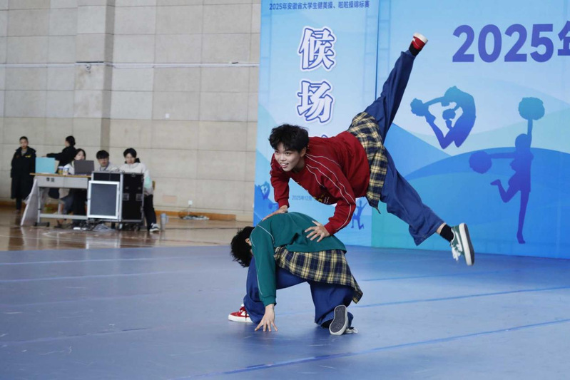 本网讯(体育健康学院)12月6日,2025年安徽省大学生健美操、啦啦操锦标赛在安庆师范大学圆满落幕。本次大赛吸引了来自全省各高校的三十六支代表队同台竞技,围绕多个项目展开激烈角逐,争夺荣誉席位。我校北斗啦啦队凭借扎实的训练功底、默契的团队协作与昂扬的青春斗志,在众多参赛队伍中脱颖而出,一举斩获三项第一名。